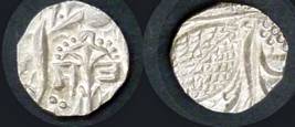| Description / विवरण | Descrpn./Obv In the centre, a chhatra with Sa and Ta in Gurumukhi script on the left and right of its shaft; traces of the Persian legend seen on the obverse of the bigger Nanakshahi coins of Amritsar mint are also seen. Descrpn./Rev Big peepal leaf and traces of the Persian legend seen on the reverse of the bigger Nanakshahi coins of Amiritsar mint - Shri Amritsarjiv zarb [VS Year] Takht maimanat julus manus Akal Bakht. Especially traces of alif of Akal and te of Takht and maimanat are seen |