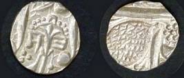 | Description / विवरण | Descrpn./Obv In the centre, a chhatra with Sa and Ta in Gurumukhi script on the left and right of its shaft; traces of the Persian legend seen on the obverse of the bigger Nanakshahi coins of Amritsar mint are also seen. Descrpn./Rev Big peepal leaf and traces of the Persian legend seen on the reverse of the bigger Nanakshahi coins of Amiritsar mint - Shri Amritsarjiv zarb [VS Year] Takht maimanat julus manus Akal Bakht. Especially traces of alif of Akal and te of Takht and maimanat are seen |