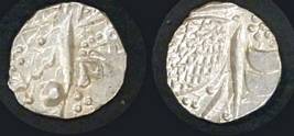 | Description / विवरण | Descrpn./Obv In the centre, a chhatra with Sa and Ta in Gurumukhi script on the left and right of its shaft; traces of the Persian legend seen on the obverse of the bigger Nanakshahi coins of Amritsar mint are also seen. Descrpn./Rev Big peepal leaf and traces of the Persian legend seen on the reverse of the bigger Nanakshahi coins of Amiritsar mint - Shri Amritsarjiv zarb [VS Year] Takht maimanat julus manus Akal Bakht. Especially traces of alif of Akal and te of Takht and maimanat are seen |