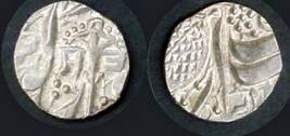 | Description / विवरण | Descrpn./Obv In the centre, a chhatra with Sa and Ta in Gurumukhi script on the left and right of its shaft; traces of the Persian legend seen on the obverse of the bigger Nanakshahi coins of Amritsar mint are also seen. Descrpn./Rev Big peepal leaf and traces of the Persian legend seen on the reverse of the bigger Nanakshahi coins of Amiritsar mint - Shri Amritsarjiv zarb [VS Year] Takht maimanat julus manus Akal Bakht. Especially traces of alif of Akal and te of Takht and maimanat are seen |