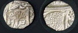 | Description / विवरण | Descrpn./Obv In the centre, a chhatra with Sa and Ta in Gurumukhi script on the left and right of its shaft; traces of the Persian legend seen on the obverse of the bigger Nanakshahi coins of Amritsar mint are also seen. Descrpn./Rev Big peepal leaf and traces of the Persian legend seen on the reverse of the bigger Nanakshahi coins of Amiritsar mint - Shri Amritsarjiv zarb [VS Year] Takht maimanat julus manus Akal Bakht. Especially traces of alif of Akal and te of Takht and maimanat are seen |