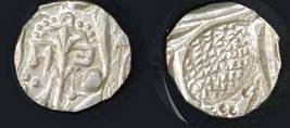 | Description / विवरण | Descrpn./Obv In the centre, a chhatra with Sa and Ta in Gurumukhi script on the left and right of its shaft; traces of the Persian legend seen on the obverse of the bigger Nanakshahi coins of Amritsar mint are also seen. Descrpn./Rev Big peepal leaf and traces of the Persian legend seen on the reverse of the bigger Nanakshahi coins of Amiritsar mint - Shri Amritsarjiv zarb [VS Year] Takht maimanat julus manus Akal Bakht. Especially traces of alif of Akal and te of Takht and maimanat are seen |