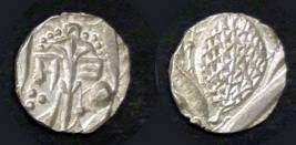 | Description / विवरण | Descrpn./Obv In the centre, a chhatra with Sa and Ta in Gurumukhi script on the left and right of its shaft; traces of the Persian legend seen on the obverse of the bigger Nanakshahi coins of Amritsar mint are also seen. Descrpn./Rev Big peepal leaf and traces of the Persian legend seen on the reverse of the bigger Nanakshahi coins of Amiritsar mint - Shri Amritsarjiv zarb [VS Year] Takht maimanat julus manus Akal Bakht. Especially traces of alif of Akal and te of Takht and maimanat are seen |