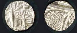 | Description / विवरण | Descrpn./Obv In the centre, a chhatra with Sa and Ta in Gurumukhi script on the left and right of its shaft; traces of the Persian legend seen on the obverse of the bigger Nanakshahi coins of Amritsar mint are also seen. Descrpn./Rev Big peepal leaf and traces of the Persian legend seen on the reverse of the bigger Nanakshahi coins of Amiritsar mint - Shri Amritsarjiv zarb [VS Year] Takht maimanat julus manus Akal Bakht. Especially traces of alif of Akal and te of Takht and maimanat are seen |