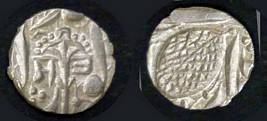 | Description / विवरण | Descrpn./Obv In the centre, a chhatra with Sa and Ta in Gurumukhi script on the left and right of its shaft; traces of the Persian legend seen on the obverse of the bigger Nanakshahi coins of Amritsar mint are also seen. Descrpn./Rev Big peepal leaf and traces of the Persian legend seen on the reverse of the bigger Nanakshahi coins of Amiritsar mint - Shri Amritsarjiv zarb [VS Year] Takht maimanat julus manus Akal Bakht. Especially traces of alif of Akal and te of Takht and maimanat are seen |