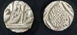 | Description / विवरण | Descrpn./Obv In the centre, a chhatra with Sa and Ta in Gurumukhi script on the left and right of its shaft; traces of the Persian legend seen on the obverse of the bigger Nanakshahi coins of Amritsar mint are also seen. Descrpn./Rev Big peepal leaf and traces of the Persian legend seen on the reverse of the bigger Nanakshahi coins of Amiritsar mint - Shri Amritsarjiv zarb [VS Year] Takht maimanat julus manus Akal Bakht. Especially traces of alif of Akal and te of Takht and maimanat are seen |