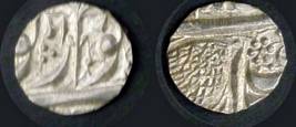 | Description / विवरण | Descrpn./Obv In the centre, a chhatra with Sa and Ta in Gurumukhi script on the left and right of its shaft; traces of the Persian legend seen on the obverse of the bigger Nanakshahi coins of Amritsar mint are also seen. Descrpn./Rev Big peepal leaf and traces of the Persian legend seen on the reverse of the bigger Nanakshahi coins of Amiritsar mint - Shri Amritsarjiv zarb [VS Year] Takht maimanat julus manus Akal Bakht. Especially traces of alif of Akal and te of Takht and maimanat are seen |