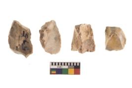 | Description / विवरण | There are n 4 of utilized worked cores and show irregular scar pattern on both dorsal and ventral side. Two are tapering at one end while two have a broken tip. |