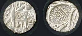 | Description / विवरण | Descrpn./Obv In the centre, a chhatra with Sa and Ta in Gurumukhi script on the left and right of its shaft; traces of the Persian legend seen on the obverse of the bigger Nanakshahi coins of Amritsar mint are also seen. Descrpn./Rev Big peepal leaf and traces of the Persian legend seen on the reverse of the bigger Nanakshahi coins of Amiritsar mint - Shri Amritsarjiv zarb [VS Year] Takht maimanat julus manus Akal Bakht. Especially traces of alif of Akal and te of Takht and maimanat are seen |