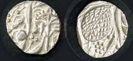 | Description / विवरण | Descrpn./Obv In the centre, a chhatra with Sa and Ta in Gurumukhi script on the left and right of its shaft; traces of the Persian legend seen on the obverse of the bigger Nanakshahi coins of Amritsar mint are also seen. Descrpn./Rev Big peepal leaf and traces of the Persian legend seen on the reverse of the bigger Nanakshahi coins of Amiritsar mint - Shri Amritsarjiv zarb [VS Year] Takht maimanat julus manus Akal Bakht. Especially traces of alif of Akal and te of Takht and maimanat are seen |
