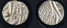 | Description / विवरण | Descrpn./Obv In the centre, a chhatra with Sa and Ta in Gurumukhi script on the left and right of its shaft; traces of the Persian legend seen on the obverse of the bigger Nanakshahi coins of Amritsar mint are also seen. Descrpn./Rev Big peepal leaf and traces of the Persian legend seen on the reverse of the bigger Nanakshahi coins of Amiritsar mint - Shri Amritsarjiv zarb [VS Year] Takht maimanat julus manus Akal Bakht. Especially traces of alif of Akal and te of Takht and maimanat are seen |