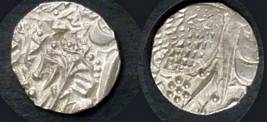 | Description / विवरण | Descrpn./Obv In the centre, a chhatra with Sa and Ta in Gurumukhi script on the left and right of its shaft; traces of the Persian legend seen on the obverse of the bigger Nanakshahi coins of Amritsar mint are also seen. Descrpn./Rev Big peepal leaf and traces of the Persian legend seen on the reverse of the bigger Nanakshahi coins of Amiritsar mint - Shri Amritsarjiv zarb [VS Year] Takht maimanat julus manus Akal Bakht. Especially traces of alif of Akal and te of Takht and maimanat are seen |