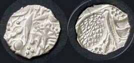 | Description / विवरण | Descrpn./Obv In the centre, a chhatra with Sa and Ta in Gurumukhi script on the left and right of its shaft; traces of the Persian legend seen on the obverse of the bigger Nanakshahi coins of Amritsar mint are also seen. Descrpn./Rev Big peepal leaf and traces of the Persian legend seen on the reverse of the bigger Nanakshahi coins of Amiritsar mint - Shri Amritsarjiv zarb [VS Year] Takht maimanat julus manus Akal Bakht. Especially traces of alif of Akal and te of Takht and maimanat are seen |
