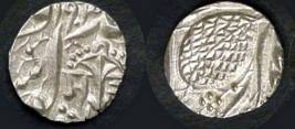 | Description / विवरण | Descrpn./Obv In the centre, a chhatra with Sa and Ta in Gurumukhi script on the left and right of its shaft; traces of the Persian legend seen on the obverse of the bigger Nanakshahi coins of Amritsar mint are also seen. Descrpn./Rev Big peepal leaf and traces of the Persian legend seen on the reverse of the bigger Nanakshahi coins of Amiritsar mint - Shri Amritsarjiv zarb [VS Year] Takht maimanat julus manus Akal Bakht. Especially traces of alif of Akal and te of Takht and maimanat are seen |