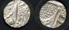 | Description / विवरण | Descrpn./Obv In the centre, a chhatra with Sa and Ta in Gurumukhi script on the left and right of its shaft; traces of the Persian legend seen on the obverse of the bigger Nanakshahi coins of Amritsar mint are also seen. Descrpn./Rev Big peepal leaf and traces of the Persian legend seen on the reverse of the bigger Nanakshahi coins of Amiritsar mint - Shri Amritsarjiv zarb [VS Year] Takht maimanat julus manus Akal Bakht. Especially traces of alif of Akal and te of Takht and maimanat are seen |