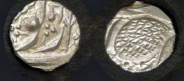 | Description / विवरण | Descrpn./Obv In the centre, a chhatra with Sa and Ta in Gurumukhi script on the left and right of its shaft; traces of the Persian legend seen on the obverse of the bigger Nanakshahi coins of Amritsar mint are also seen. Descrpn./Rev Big peepal leaf and traces of the Persian legend seen on the reverse of the bigger Nanakshahi coins of Amiritsar mint - Shri Amritsarjiv zarb [VS Year] Takht maimanat julus manus Akal Bakht. Especially traces of alif of Akal and te of Takht and maimanat are seen |