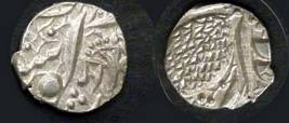 | Description / विवरण | Descrpn./Obv In the centre, a chhatra with Sa and Ta in Gurumukhi script on the left and right of its shaft; traces of the Persian legend seen on the obverse of the bigger Nanakshahi coins of Amritsar mint are also seen. Descrpn./Rev Big peepal leaf and traces of the Persian legend seen on the reverse of the bigger Nanakshahi coins of Amiritsar mint - Shri Amritsarjiv zarb [VS Year] Takht maimanat julus manus Akal Bakht. Especially traces of alif of Akal and te of Takht and maimanat are seen |