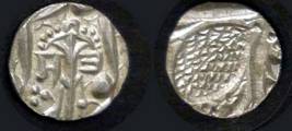 | Description / विवरण | Descrpn./Obv In the centre, a chhatra with Sa and Ta in Gurumukhi script on the left and right of its shaft; traces of the Persian legend seen on the obverse of the bigger Nanakshahi coins of Amritsar mint are also seen. Descrpn./Rev Big peepal leaf and traces of the Persian legend seen on the reverse of the bigger Nanakshahi coins of Amiritsar mint - Shri Amritsarjiv zarb [VS Year] Takht maimanat julus manus Akal Bakht. Especially traces of alif of Akal and te of Takht and maimanat are seen |