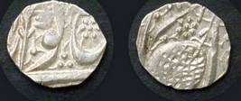 | Description / विवरण | Descrpn./Obv In the centre, a chhatra with Sa and Ta in Gurumukhi script on the left and right of its shaft; traces of the Persian legend seen on the obverse of the bigger Nanakshahi coins of Amritsar mint are also seen. Descrpn./Rev Big peepal leaf and traces of the Persian legend seen on the reverse of the bigger Nanakshahi coins of Amiritsar mint - Shri Amritsarjiv zarb [VS Year] Takht maimanat julus manus Akal Bakht. Especially traces of alif of Akal and te of Takht and maimanat are seen |
