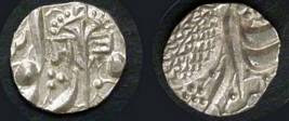 | Description / विवरण | Descrpn./Obv In the centre, a chhatra with Sa and Ta in Gurumukhi script on the left and right of its shaft; traces of the Persian legend seen on the obverse of the bigger Nanakshahi coins of Amritsar mint are also seen. Descrpn./Rev Big peepal leaf and traces of the Persian legend seen on the reverse of the bigger Nanakshahi coins of Amiritsar mint - Shri Amritsarjiv zarb [VS Year] Takht maimanat julus manus Akal Bakht. Especially traces of alif of Akal and te of Takht and maimanat are seen |
