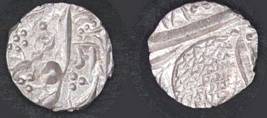 | Description / विवरण | Descrpn./Obv In the centre, a chhatra with Sa and Ta in Gurumukhi script on the left and right of its shaft; traces of the Persian legend seen on the obverse of the bigger Nanakshahi coins of Amritsar mint are also seen. Descrpn./Rev Big peepal leaf and traces of the Persian legend seen on the reverse of the bigger Nanakshahi coins of Amiritsar mint - Shri Amritsarjiv zarb [VS Year] Takht maimanat julus manus Akal Bakht. Especially traces of alif of Akal and te of Takht and maimanat are seen |