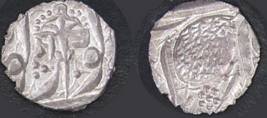 | Description / विवरण | Descrpn./Obv In the centre, a chhatra with Sa and Ta in Gurumukhi script on the left and right of its shaft; traces of the Persian legend seen on the obverse of the bigger Nanakshahi coins of Amritsar mint are also seen. Descrpn./Rev Big peepal leaf and traces of the Persian legend seen on the reverse of the bigger Nanakshahi coins of Amiritsar mint - Shri Amritsarjiv zarb [VS Year] Takht maimanat julus manus Akal Bakht. Especially traces of alif of Akal and te of Takht and maimanat are seen |