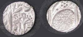 | Description / विवरण | Descrpn./Obv In the centre, a chhatra with Sa and Ta in Gurumukhi script on the left and right of its shaft; traces of the Persian legend seen on the obverse of the bigger Nanakshahi coins of Amritsar mint are also seen. Descrpn./Rev Big peepal leaf and traces of the Persian legend seen on the reverse of the bigger Nanakshahi coins of Amiritsar mint - Shri Amritsarjiv zarb [VS Year] Takht maimanat julus manus Akal Bakht. Especially traces of alif of Akal and te of Takht and maimanat are seen |
