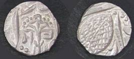 | Description / विवरण | Descrpn./Obv In the centre, a chhatra with Sa and Ta in Gurumukhi script on the left and right of its shaft; traces of the Persian legend seen on the obverse of the bigger Nanakshahi coins of Amritsar mint are also seen. Descrpn./Rev Big peepal leaf and traces of the Persian legend seen on the reverse of the bigger Nanakshahi coins of Amiritsar mint - Shri Amritsarjiv zarb [VS Year] Takht maimanat julus manus Akal Bakht. Especially traces of alif of Akal and te of Takht and maimanat are seen |