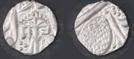 | Description / विवरण | Descrpn./Obv In the centre, a chhatra with Sa and Ta in Gurumukhi script on the left and right of its shaft; traces of the Persian legend seen on the obverse of the bigger Nanakshahi coins of Amritsar mint are also seen. Descrpn./Rev Big peepal leaf and traces of the Persian legend seen on the reverse of the bigger Nanakshahi coins of Amiritsar mint - Shri Amritsarjiv zarb [VS Year] Takht maimanat julus manus Akal Bakht. Especially traces of alif of Akal and te of Takht and maimanat are seen |