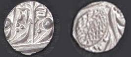 | Description / विवरण | Descrpn./Obv In the centre, a chhatra with Sa and Ta in Gurumukhi script on the left and right of its shaft; traces of the Persian legend seen on the obverse of the bigger Nanakshahi coins of Amritsar mint are also seen. Descrpn./Rev Big peepal leaf and traces of the Persian legend seen on the reverse of the bigger Nanakshahi coins of Amiritsar mint - Shri Amritsarjiv zarb [VS Year] Takht maimanat julus manus Akal Bakht. Especially traces of alif of Akal and te of Takht and maimanat are seen |