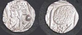 | Description / विवरण | Descrpn./Obv In the centre, a chhatra with Sa and Ta in Gurumukhi script on the left and right of its shaft; traces of the Persian legend seen on the obverse of the bigger Nanakshahi coins of Amritsar mint are also seen. Descrpn./Rev Big peepal leaf and traces of the Persian legend seen on the reverse of the bigger Nanakshahi coins of Amiritsar mint - Shri Amritsarjiv zarb [VS Year] Takht maimanat julus manus Akal Bakht. Especially traces of alif of Akal and te of Takht and maimanat are seen |