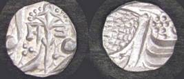 | Description / विवरण | Descrpn./Obv In the centre, a chhatra with Sa and Ta in Gurumukhi script on the left and right of its shaft; traces of the Persian legend seen on the obverse of the bigger Nanakshahi coins of Amritsar mint are also seen. Descrpn./Rev Big peepal leaf and traces of the Persian legend seen on the reverse of the bigger Nanakshahi coins of Amiritsar mint - Shri Amritsarjiv zarb [VS Year] Takht maimanat julus manus Akal Bakht. Especially traces of alif of Akal and te of Takht and maimanat are seen |
