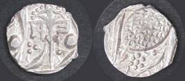 | Description / विवरण | Descrpn./Obv In the centre, a chhatra with Sa and Ta in Gurumukhi script on the left and right of its shaft; traces of the Persian legend seen on the obverse of the bigger Nanakshahi coins of Amritsar mint are also seen. Descrpn./Rev Big peepal leaf and traces of the Persian legend seen on the reverse of the bigger Nanakshahi coins of Amiritsar mint - Shri Amritsarjiv zarb [VS Year] Takht maimanat julus manus Akal Bakht. Especially traces of alif of Akal and te of Takht and maimanat are seen |