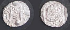 | Description / विवरण | Descrpn./Obv In the centre, a chhatra with Sa and Ta in Gurumukhi script on the left and right of its shaft; traces of the Persian legend seen on the obverse of the bigger Nanakshahi coins of Amritsar mint are also seen. Descrpn./Rev Big peepal leaf and traces of the Persian legend seen on the reverse of the bigger Nanakshahi coins of Amiritsar mint - Shri Amritsarjiv zarb [VS Year] Takht maimanat julus manus Akal Bakht. Especially traces of alif of Akal and te of Takht and maimanat are seen |