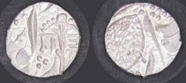 | Description / विवरण | Descrpn./Obv In the centre, a chhatra with Sa and Ta in Gurumukhi script on the left and right of its shaft; traces of the Persian legend seen on the obverse of the bigger Nanakshahi coins of Amritsar mint are also seen. Descrpn./Rev Big peepal leaf and traces of the Persian legend seen on the reverse of the bigger Nanakshahi coins of Amiritsar mint - Shri Amritsarjiv zarb [VS Year] Takht maimanat julus manus Akal Bakht. Especially traces of alif of Akal and te of Takht and maimanat are seen |