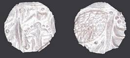 | Description / विवरण | Descrpn./Obv In the centre, a chhatra with Sa and Ta in Gurumukhi script on the left and right of its shaft; traces of the Persian legend seen on the obverse of the bigger Nanakshahi coins of Amritsar mint are also seen. Descrpn./Rev Big peepal leaf and traces of the Persian legend seen on the reverse of the bigger Nanakshahi coins of Amiritsar mint - Shri Amritsarjiv zarb [VS Year] Takht maimanat julus manus Akal Bakht. Especially traces of alif of Akal and te of Takht and maimanat are seen |
