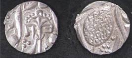 | Description / विवरण | Descrpn./Obv In the centre, a chhatra with Sa and Ta in Gurumukhi script on the left and right of its shaft; traces of the Persian legend seen on the obverse of the bigger Nanakshahi coins of Amritsar mint are also seen. Descrpn./Rev Big peepal leaf and traces of the Persian legend seen on the reverse of the bigger Nanakshahi coins of Amiritsar mint - Shri Amritsarjiv zarb [VS Year] Takht maimanat julus manus Akal Bakht. Especially traces of alif of Akal and te of Takht and maimanat are seen |