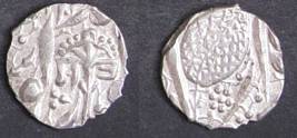 | Description / विवरण | Descrpn./Obv In the centre, a chhatra with Sa and Ta in Gurumukhi script on the left and right of its shaft; traces of the Persian legend seen on the obverse of the bigger Nanakshahi coins of Amritsar mint are also seen. Descrpn./Rev Big peepal leaf and traces of the Persian legend seen on the reverse of the bigger Nanakshahi coins of Amiritsar mint - Shri Amritsarjiv zarb [VS Year] Takht maimanat julus manus Akal Bakht. Especially traces of alif of Akal and te of Takht and maimanat are seen |