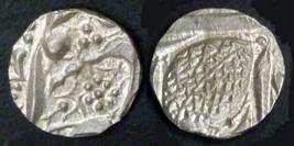 | Description / विवरण | Descrpn./Obv In the centre, a chhatra with Sa and Ta in Gurumukhi script on the left and right of its shaft; traces of the Persian legend seen on the obverse of the bigger Nanakshahi coins of Amritsar mint are also seen. Descrpn./Rev Big peepal leaf and traces of the Persian legend seen on the reverse of the bigger Nanakshahi coins of Amiritsar mint - Shri Amritsarjiv zarb [VS Year] Takht maimanat julus manus Akal Bakht. Especially traces of alif of Akal and te of Takht and maimanat are seen |