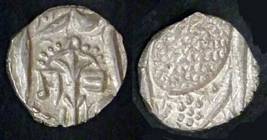 | Description / विवरण | Descrpn./Obv In the centre, a chhatra with Sa and Ta in Gurumukhi script on the left and right of its shaft; traces of the Persian legend seen on the obverse of the bigger Nanakshahi coins of Amritsar mint are also seen. Descrpn./Rev Big peepal leaf and traces of the Persian legend seen on the reverse of the bigger Nanakshahi coins of Amiritsar mint - Shri Amritsarjiv zarb [VS Year] Takht maimanat julus manus Akal Bakht. Especially traces of alif of Akal and te of Takht and maimanat are seen |
