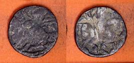 | Description / विवरण | Descrpn./Obv Recumbent bull facing left, wearing jhula (saddle cloth), with trisula (trident) symbol on rump. Above, legend in Sarada script Sri Samantadeva . Descrpn./Rev Rider with lance on caparisoned horse facing right. On left, Sarada letter bhi and on right, Sarada letter ta |