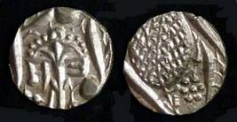 | Description / विवरण | Descrpn./Obv In the centre, a chhatra with Sa and Ta in Gurumukhi script on the left and right of its shaft; traces of the Persian legend seen on the obverse of the bigger Nanakshahi coins of Amritsar mint are also seen. Descrpn./Rev Big peepal leaf and traces of the Persian legend seen on the reverse of the bigger Nanakshahi coins of Amiritsar mint - Shri Amritsarjiv zarb [VS Year] Takht maimanat julus manus Akal Bakht. Especially traces of alif of Akal and te of Takht and maimanat are seen |