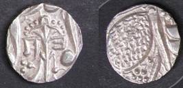 | Description / विवरण | Descrpn./Obv In the centre, a chhatra with Sa and Ta in Gurumukhi script on the left and right of its shaft; traces of the Persian legend seen on the obverse of the bigger Nanakshahi coins of Amritsar mint are also seen. Descrpn./Rev Big peepal leaf and traces of the Persian legend seen on the reverse of the bigger Nanakshahi coins of Amiritsar mint - Shri Amritsarjiv zarb [VS Year] Takht maimanat julus manus Akal Bakht. Especially traces of alif of Akal and te of Takht and maimanat are seen |