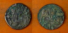 | Description / विवरण | Descrpn./Obv Recumbent bull facing left, wearing jhula (saddle cloth), with trisula (trident) symbol on rump. Above, legend in Sarada script Sri Samantadeva . Descrpn./Rev Rider with lance on caparisoned horse facing right. On left, Sarada letter bhi and on right, Sarada letter ta |