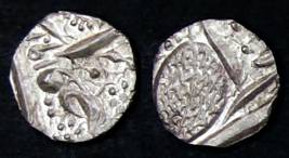 | Description / विवरण | Descrpn./Obv In the centre, a chhatra with Sa and Ta in Gurumukhi script on the left and right of its shaft; traces of the Persian legend seen on the obverse of the bigger Nanakshahi coins of Amritsar mint are also seen. Descrpn./Rev Big peepal leaf and traces of the Persian legend seen on the reverse of the bigger Nanakshahi coins of Amiritsar mint - Shri Amritsarjiv zarb [VS Year] Takht maimanat julus manus Akal Bakht. Especially traces of alif of Akal and te of Takht and maimanat are seen |
