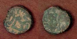 | Description / विवरण | Descrpn./Obv Recumbent bull facing left, wearing jhula (saddle cloth). Above, legend in Sarada script Sri Samantadeva (in cursive letters, mostly truncated and seen partially or off the flan). Descrpn./Rev Rider with lance on caparisoned horse facing right. |