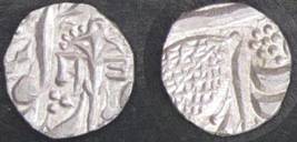 | Description / विवरण | Descrpn./Obv In the centre, a chhatra with Sa and Ta in Gurumukhi script on the left and right of its shaft; traces of the Persian legend seen on the obverse of the bigger Nanakshahi coins of Amritsar mint are also seen. Descrpn./Rev Big peepal leaf and traces of the Persian legend seen on the reverse of the bigger Nanakshahi coins of Amiritsar mint - Shri Amritsarjiv zarb [VS Year] Takht maimanat julus manus Akal Bakht. Especially traces of alif of Akal and te of Takht and maimanat are seen |