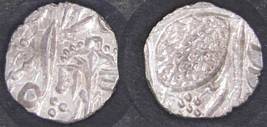 | Description / विवरण | Descrpn./Obv In the centre, a chhatra with Sa and Ta in Gurumukhi script on the left and right of its shaft; traces of the Persian legend seen on the obverse of the bigger Nanakshahi coins of Amritsar mint are also seen. Descrpn./Rev Big peepal leaf and traces of the Persian legend seen on the reverse of the bigger Nanakshahi coins of Amiritsar mint - Shri Amritsarjiv zarb [VS Year] Takht maimanat julus manus Akal Bakht. Especially traces of alif of Akal and te of Takht and maimanat are seen |