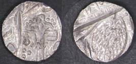 | Description / विवरण | Descrpn./Obv In the centre, a chhatra with Sa and Ta in Gurumukhi script on the left and right of its shaft; traces of the Persian legend seen on the obverse of the bigger Nanakshahi coins of Amritsar mint are also seen. Descrpn./Rev Big peepal leaf and traces of the Persian legend seen on the reverse of the bigger Nanakshahi coins of Amiritsar mint - Shri Amritsarjiv zarb [VS Year] Takht maimanat julus manus Akal Bakht. Especially traces of alif of Akal and te of Takht and maimanat are seen |