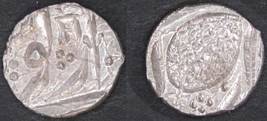 | Description / विवरण | Descrpn./Obv In the centre, a chhatra with Sa and Ta in Gurumukhi script on the left and right of its shaft; traces of the Persian legend seen on the obverse of the bigger Nanakshahi coins of Amritsar mint are also seen. Descrpn./Rev Big peepal leaf and traces of the Persian legend seen on the reverse of the bigger Nanakshahi coins of Amiritsar mint - Shri Amritsarjiv zarb [VS Year] Takht maimanat julus manus Akal Bakht. Especially traces of alif of Akal and te of Takht and maimanat are seen |